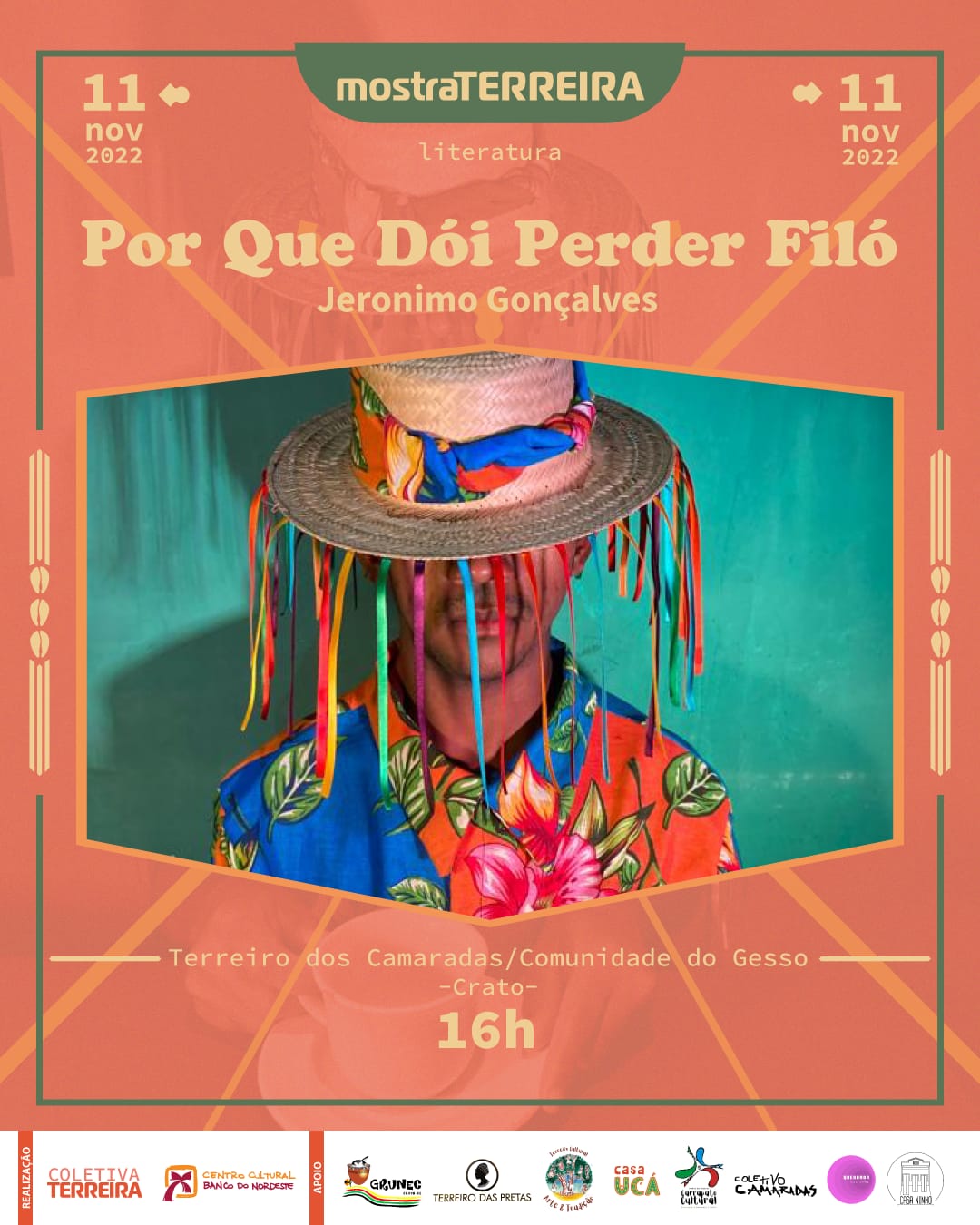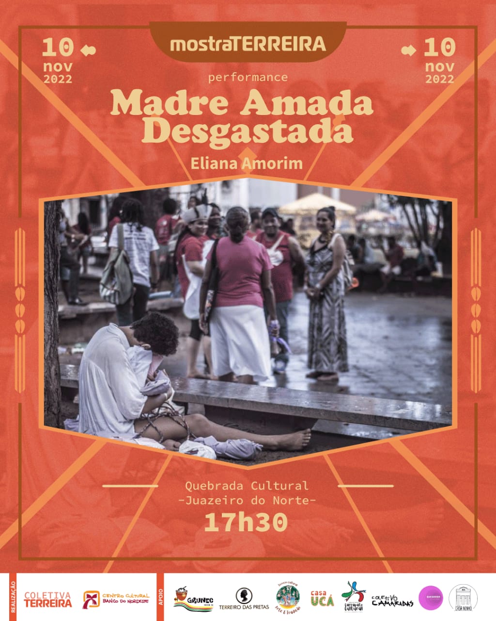 Ajuntamento de artistas pretes do Cariri atuantes em múltiplas linguagens artísticas e áreas técnicas, articulando as tecnologias de criação em campo expandido, evocando as formas de produção de saberes de base ancestral, cotidianos e acadêmicos, construindo um movimento de aquilombamento que perspectiva pensar as artes em cruzamentos numa evocação exusiática de nossas práticas.
