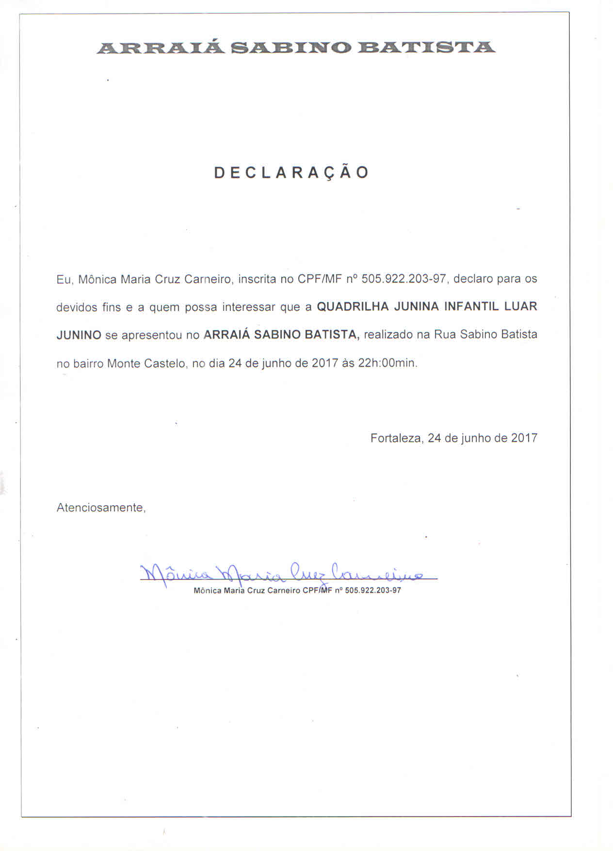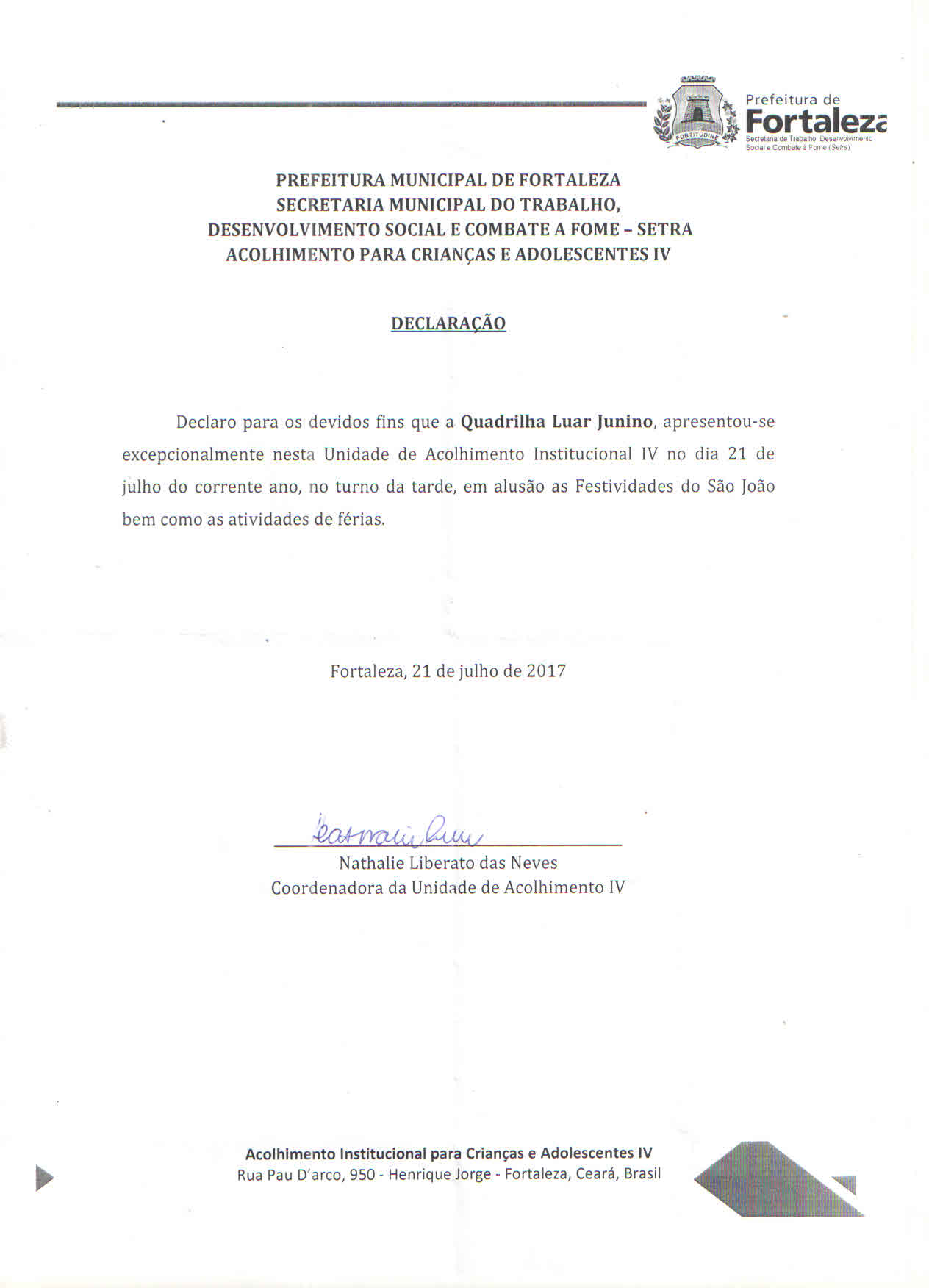 A Quadrilha já foi contemplada nos editais 2017, 2018 e 2019 ligado ao movimento Junino, o que possibilitou a execução de belo trabalho Junto ao Público Infanto-Juvenil que foi beneficiado pelas ações decorrentes do apoio e fomento necessário para a execução das propostas destes anos. Faz dois anos que o grupo está realizado o ensaio da quadrilha no Bairro do Pirambu, no sentido pode contemplar crianças e adolescestes essa comunidade.
