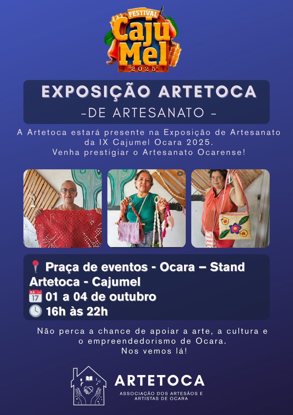 ASSOCIAÇÃO DESTINADA A FOMENTAR, DESENVOLVER, PROMOVER, VALORIZAR E DIVULGAR OS TRABALHOS DOS ARTESÃOS E ARTISTAS DE OCARA.Galeria