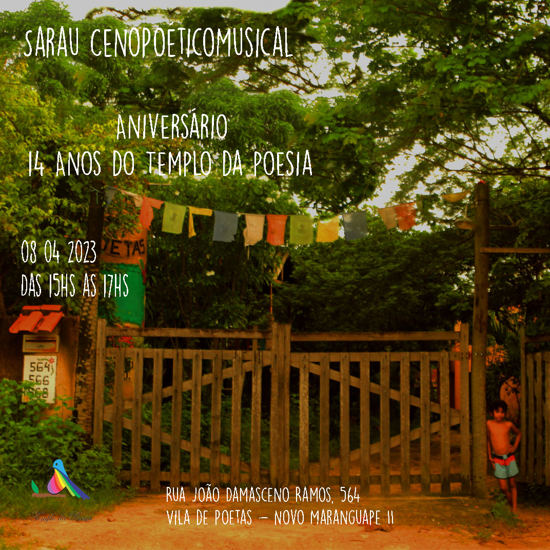 TEMPLO DA POESIA – PONTO DE CULTURA RESIDÊNCIA ARTÍSTICA INSTITUTO CULTURAL é uma proposta de vida de um grupo de poetas e poetisas. Foi criado em 2009 numa configuração urbana, funcionando no centro da cidade de Fortaleza. Consistia em uma convivência entre um grupo de poetas e poetisas que se encontravam na semana para atividades menores e tinham um encontro mensal, onde participavam diversos poetas, poetisas e outros convidados da cidade, em um evento chamado Sarau Poético.A ideia do grupo fortificou-se com a ida para o município de Maranguape, para o lugar que se denominou Vila de Poetas, ali se tornou moradia de poetas com uma proposta mais arrojada de “Viver aqui e viver daqui”. Aqui se consolida a ideia de ter um lugar autogestionário, onde alguns poetas criam alternativas de geração de renda no seu próprio local de moradia. Cuida-se do meio ambiente, preservando a vegetação original, inclusive ajudando para que ela refloresça, os frutos, as flores, as árvores, que são generosos e oferecem-se para a manutenção da vida dos humanos, inclusive purificando o ar que se respira.