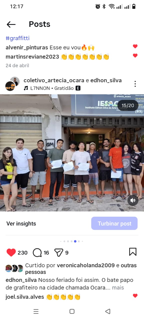 EM 2014-2015 PARTICIPEI DE PROJETOS DE: XILOGRAVURA (PACOTI, OCARA), PINTURA DE PAISAGEM BATURITÉ PELA AMAB, AUXILIEI NO PROJETO RASTRO (GRAFITTI WEAVER LIMA)
