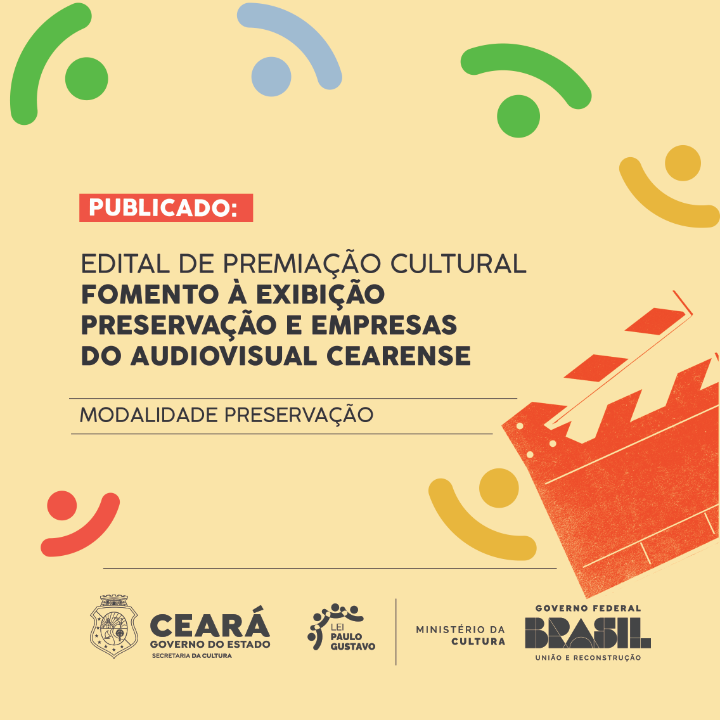 O Edital de Premiação Cultural Fomento à Exibição, Preservação e Empresas do Audiovisual Cearense – Lei Paulo Gustavo foi criado para contribuir com o desenvolvimento do setor audiovisual do Ceará e fortalecer a política estadual de audiovisual, por meio do apoio a projetos que visem a exibição de produções audiovisuais em salas multiuso públicas de exibições e cinemas itinerantes, cineclubes com trajetória, bem como a preservação da memória audiovisual em acervos e apoios à micro e pequenas empresas da área do audiovisual, com vistas à aplicação de recursos federais oriundos da Lei Complementar nº 195/2022 - Lei Paulo Gustavo, regulamentada pelo Decreto Federal nº 11.525, de 11 de maio de 2023. O Edital também faz parte das ações do Programa Ceará Filmes (Programa Estadual de Desenvolvimento do Cinema e Audiovisual, Lei n. 17.857/2021).