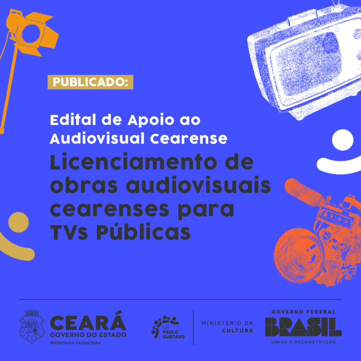 O Edital de Apoio ao Audiovisual Cearense - Licenciamento de Obras Audiovisuais Cearenses para TVs Públicas (Lei Paulo Gustavo) foi criado com o objetivo de seleção de obras audiovisuais cearenses a serem exibidas na TV Ceará e nas emissoras integrantes da Rede Nacional de Comunicação Pública - RNCP, suas retransmissoras e suas plataformas de vídeo sob demanda, com vistas à aplicação de recursos federais oriundos da Lei Complementar nº 195/2022 - Lei Paulo Gustavo, regulamentada pelo Decreto Federal nº 11.525, de 11 de maio de 2023. O Edital também faz parte das ações do Programa Ceará Filmes (Programa Estadual de Desenvolvimento do Cinema e Audiovisual, Lei n. 17.857/2021).