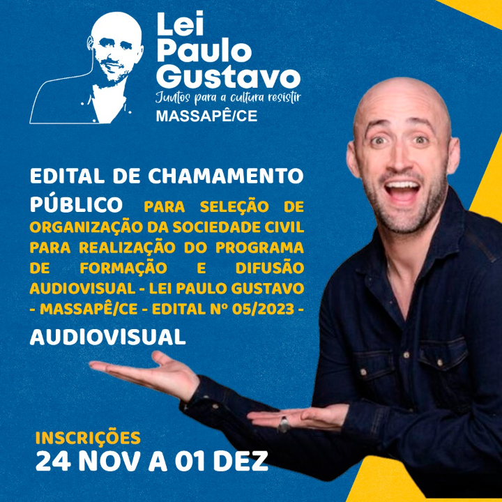 EDITAL DE CHAMAMENTO PÚBLICO PARA SELEÇÃO DE ORGANIZAÇÃO DA SOCIEDADE CIVIL PARA REALIZAÇÃO DO PROGRAMA DE FORMAÇÃO, PRODUÇÃO E DIFUSÃO AUDIOVISUAL - LEI PAULO GUSTAVO - MASSAPÊ/CE - EDITAL Nº 05/2023 - AUDIOVISUAL
