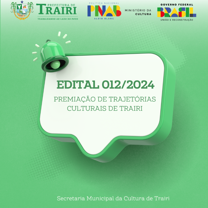 EDITAL DE CHAMAMENTO PÚBLICO Nº 012/2024 – TRAJETÓRIAS CULTURAIS DE TRAIRI - PREMIAÇÃO PARA AGENTES CULTURAIS COM RECURSOS DA POLÍTICA NACIONAL ALDIR BLANC DE FOMENTO À CULTURA - PNAB (LEI Nº 14.399/2022)